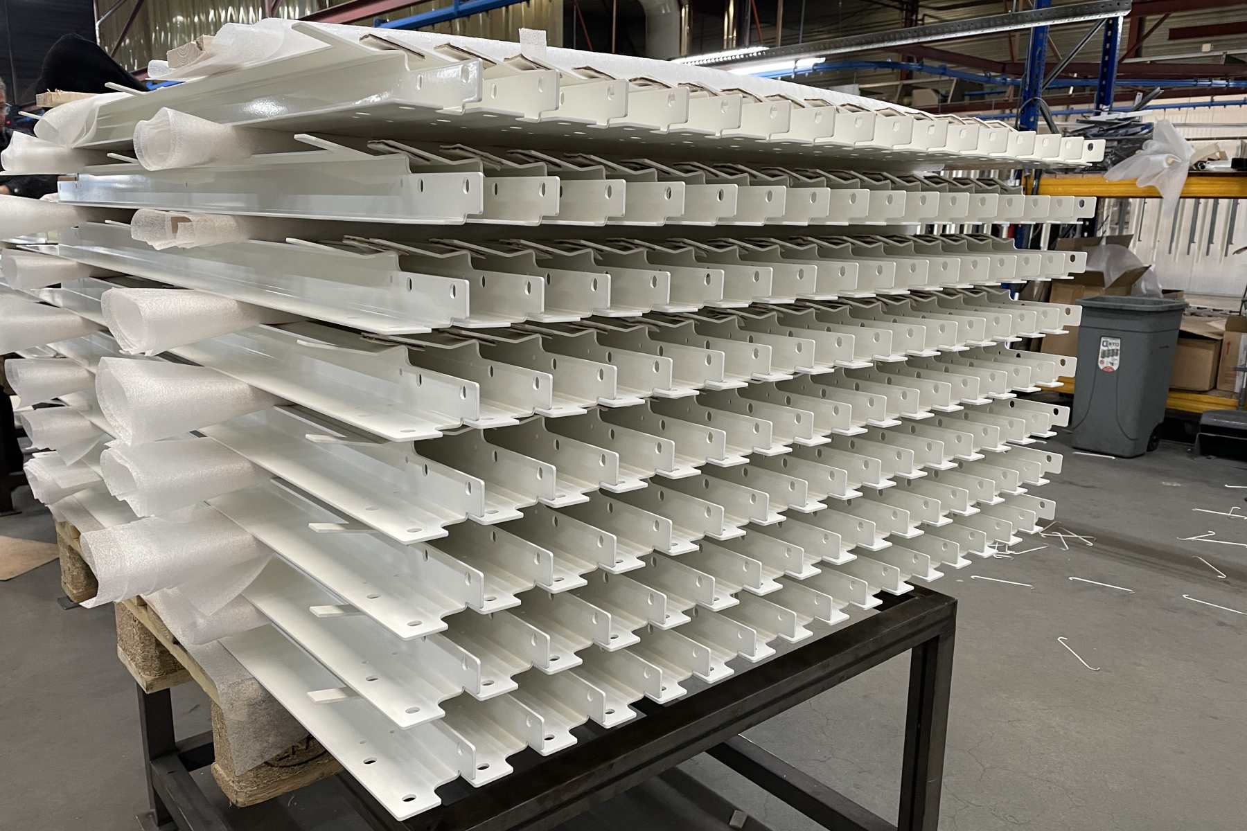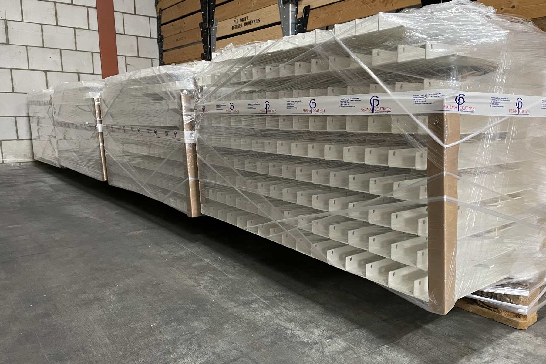 Voor een opdrachtgever in Gelderland heeft Prisma Coatings 2800 profielen mogen voorzien van een poedercoating in de kleur RAL 9010 glans.