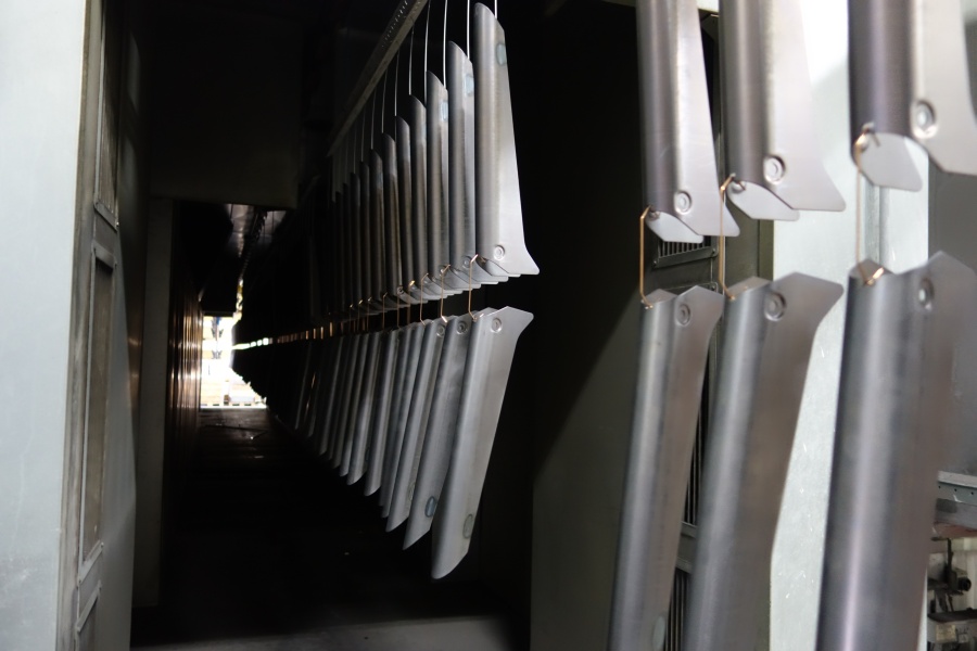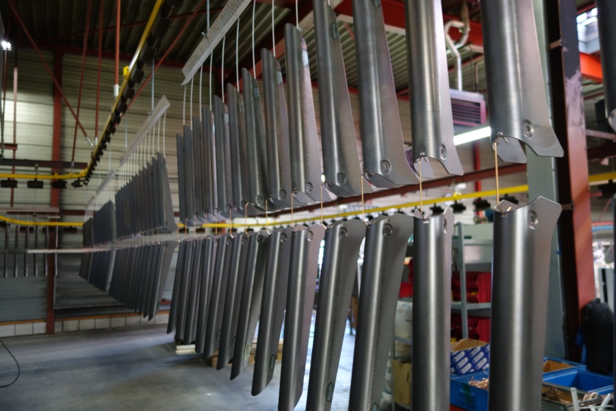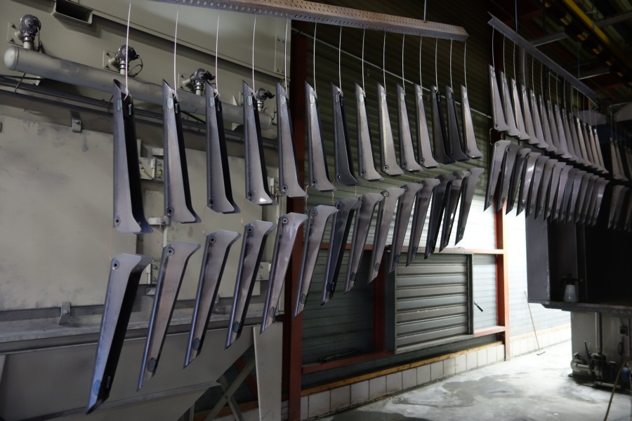 Ontvetten, ijzerfosfateren, spoelen en demispoelen: 9 van de 10 producten ondergaan bij ons een chemische voorbehandeling voor ze gepoedercoat worden. Zo ook de 5000 stalen profielen van 1,5 mm die wij voor een klant gecoat hebben.